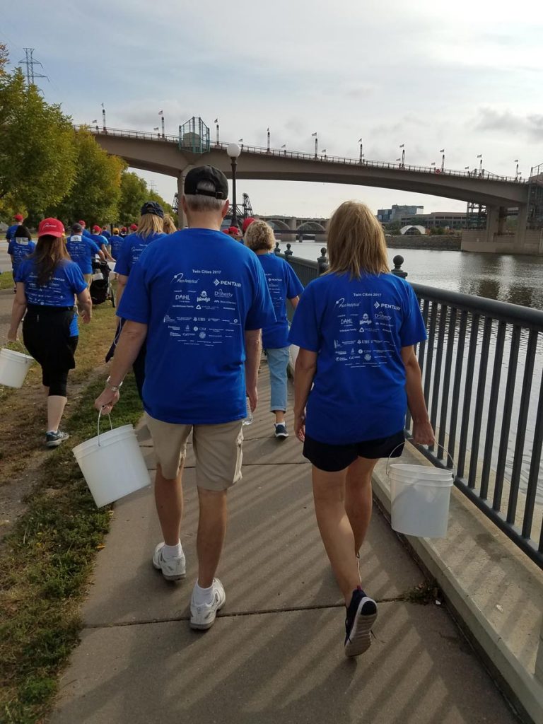 A team of Carrousel employees participated in the Walk for Water 5K for the Water Mission charity to help raise money and bring awareness to the need for safe water for those in countries in need. The walk was organized by one of the companies we work with. We carried empty buckets for 1.5 miles to the water source and filled our buckets and then carried them 1.5 miles back to symbolize how far people in other countries have to walk to get to a water source.
